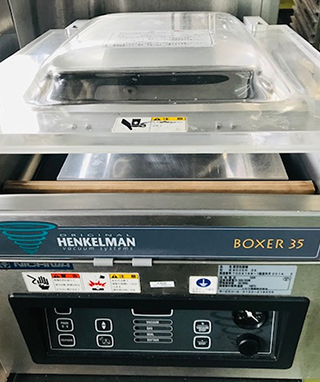 数十秒で真空包装が可能な機械です。食材の鮮度を保ち、長期保存が可能になります。食材の風味や栄養素も逃がしません。