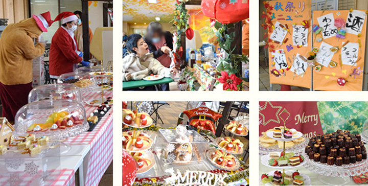 秋祭りやクリスマスマーケットでは季節に合ったイベント食を提供しています。