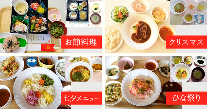 疾病や年齢に合わせたお食事の提供と共に、安心・安全でおいしい食事を提供しています。