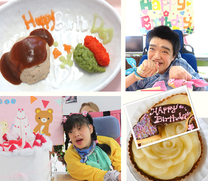 お誕生日月の入所者さんの好きなメニューや食べたいメニューをリクエストしてもらい昼食に提供します。
