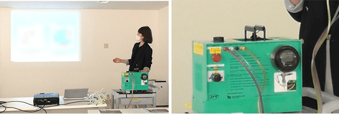 パーカッショネア・ジャパンの担当者の方に肺内パーカッションベンチレーターの原理・操作方法とその役割について実技を交えての研修が行なわれました。