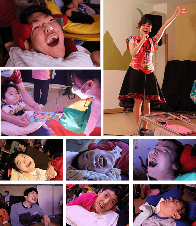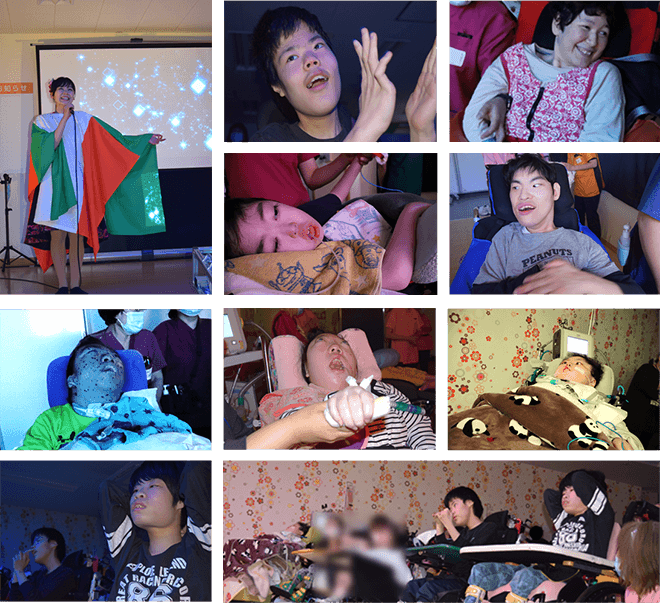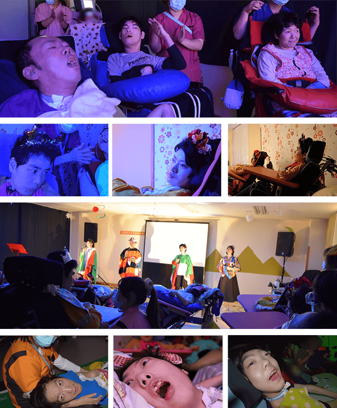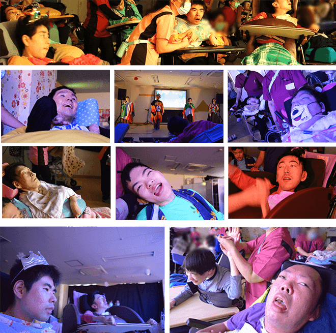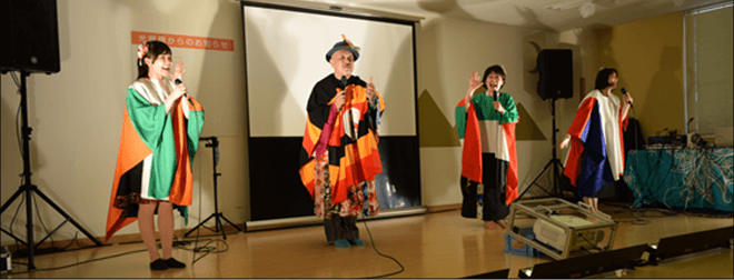 対面公演を初めて観る入所者さんや職員もおり、皆さん大興奮! おなじみのソーラン節や、ディズニーの名曲に合わせた、 音楽と映像のパフォーマンスにより、楽しい時間を過ごしました。
