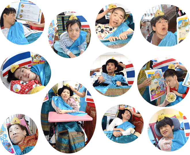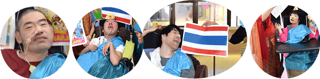 普段とは違う料理を食べたり、タイの衣装に身を包んだ際には素敵な笑顔が見られました。
