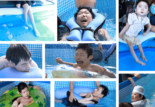 光陽園ではリハビリ課の活動の一環として、7月と8月の2回、プール活動を行いました。